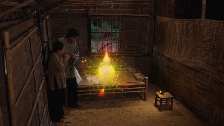 Một sáng, trong lúc ra suối giặt đồ, bà phát hiện một quả bầu hồ lô khổng lồ trôi lững lờ giữa dòng. Thấy quả bầu này có thể cho chồng đựng nước đi làm nên chị đã vớt đem về nhà. Đêm hôm đó, quả bầu bỗng phát sáng rực rỡ, tự nứt ra và một đứa bé trai sơ sinh nằm bên trong. Vợ chồng bàng hoàng nhưng hạnh phúc vô ngần, tin rằng đó là phúc trời ban. Họ đặt tên đứa bé là Lê Bảo Ân, “Ân” nghĩa là ân huệ, “Bảo” là báu vật như cách ghi nhớ món quà thiêng liêng của định mệnh.