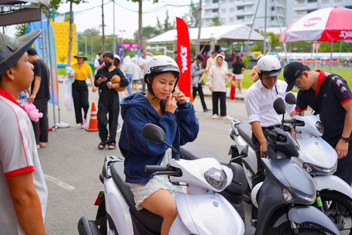Gian hàng nhanh chóng trở thành điểm dừng chân thu hút đông đảo sinh viên, không chỉ bởi hoạt động lái thử mà còn bởi không khí năng động, trẻ trung và thân thiện mà SYM mang đến.