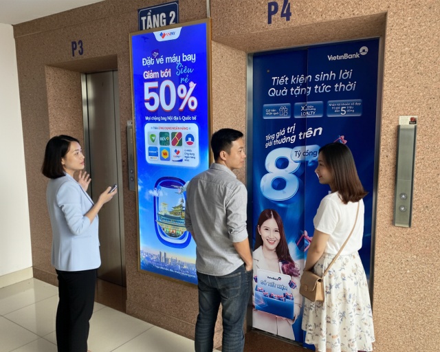 Bao gồm decal dán thang máy, standee điện sảnh thang máy và hộp đèn cửa hầm, đây là hệ thống kênh đa điểm chạm trong tòa nhà giữ những vị trí có thời gian tiếp xúc lâu, phù hợp cho việc truyền tải thông điệp thương hiệu một cách tinh tế và lặp lại.