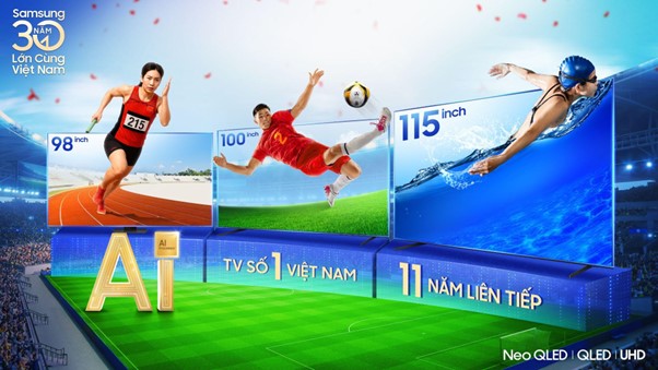 SEA Games 2025 diễn ra cùng lúc với thời điểm kỷ niệm 30 năm phát triển tại Việt Nam của Samsung. Ông lớn Hàn Quốc đã sẵn sàng cùng thể thao Việt Nam viết tiếp những kỳ tích thể thao mới tại đấu trường khu vực thông qua công nghệ âm thanh, hình ảnh đỉnh cao trên Samsung AI TV 2025.