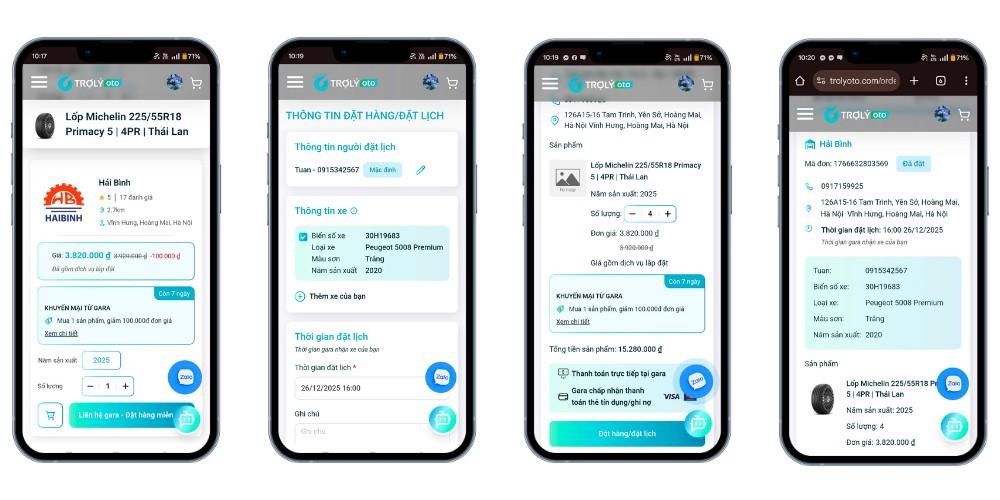 Sau khi chọn được gara hoặc đại lý, khách hàng có thể đặt lịch hẹn trực tuyến ngay trên TROLYoto. Hệ thống hiển thị thời gian trống theo lịch của gara, giúp người dùng tránh phải chờ đợi và chủ động sắp xếp thời gian.